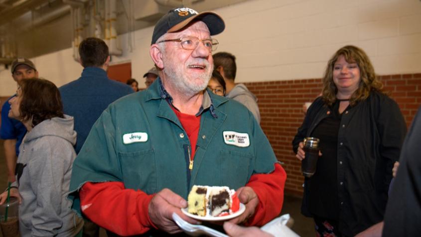 Also speaking on Willis’ behalf was Blake Nguyen, director of the Teaching Dairy operation, and Chuck Guard, faculty supervisor for the Veterinary Teaching Dairy Barn, chief of the Ambulatory and Production Medicine Clinic, and Willis’ supervisor for more than 20 years. In his letter of nomination, Guard wrote of Willis’ ability to repair broken machinery; deal “magnanimously” with bureaucratic hassles; help resolve problems “with kindness and generosity”; and remain “tireless” in the ordinary tasks of the dairy barn. “Almost all our veterinary students have genuine affection for Jerry based on their interactions with him as employees or as beginning veterinary students learning about cows and farming,” he noted.