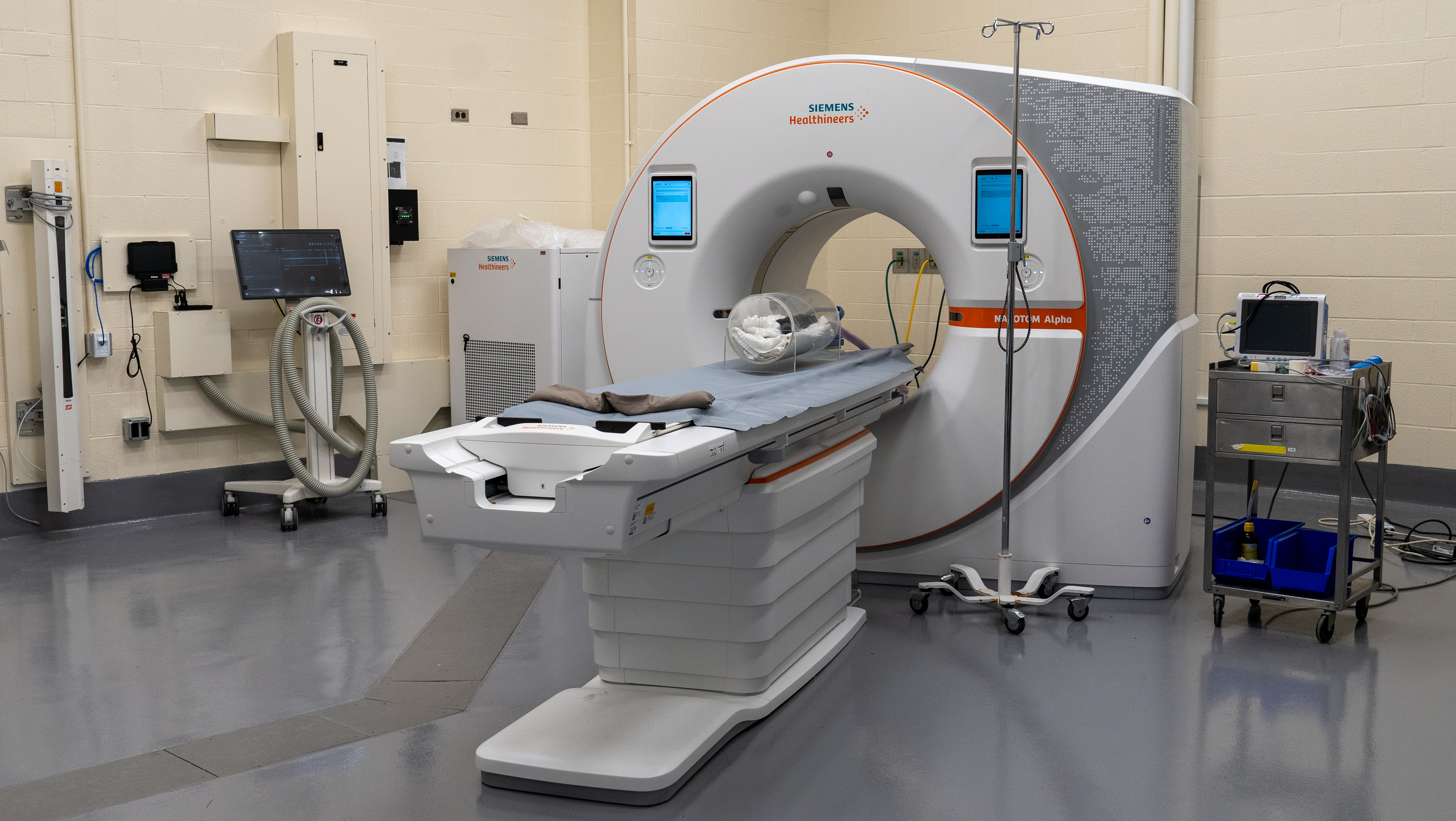 The linear accelerator is one of several recent upgrades at the Cornell University Hospital for Animals — among which is a new Siemens Naeotom Alpha photon-counting CT scanner. This machine is a leap in efficient imaging capabilities, with increased sensitivity, reduced radiation exposure and more powerful detection. It is similarly replacing technology from around 2000.