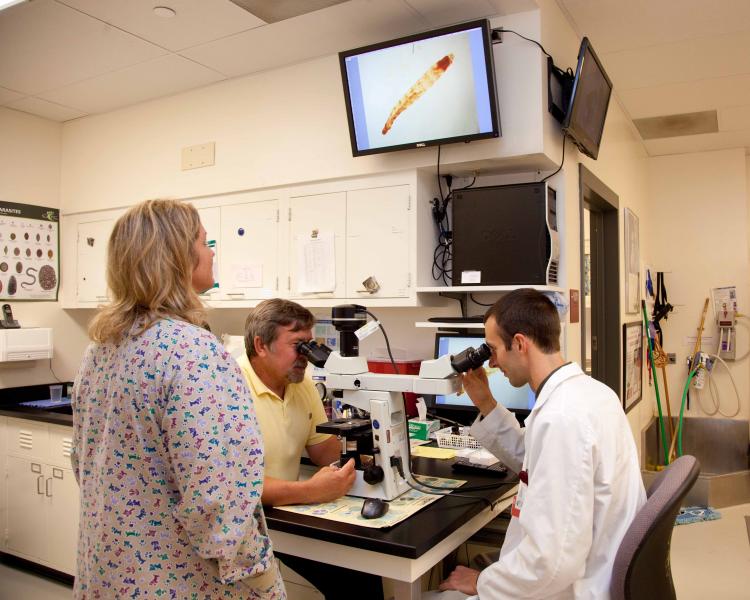 The students will then leave to consult with an intern, resident or faculty member about the history, physical examination and recommendations for case management. The faculty member, resident, or intern will accompany the student back to your examination room to examine your pet again. They may recommend further testing, and will discuss with you potential diagnosis, next steps, cost and logistics.
